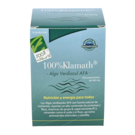 100%KlamathR de Cien por Cien Natural es un complemento alimenticio que contiene microalgas verdiazules AFA, ricas en sustancias vitales: un alto contenido de proteínas, de vitaminas del grupo B, un perfil equilibrado de aminoácidos y un amplio espectro de minerales, además de un alto porcentaje de clorofila.