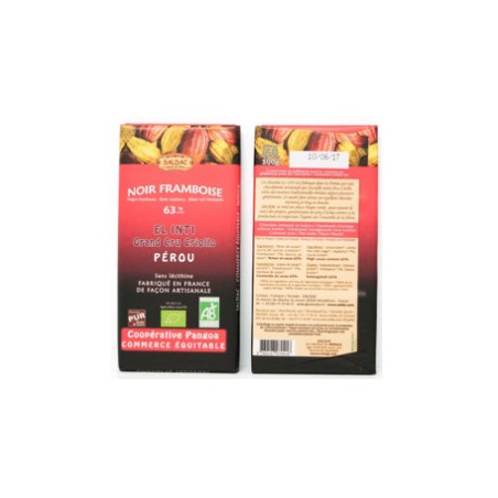 Chocolate frambuesa 63% 100gr el oro de los andes